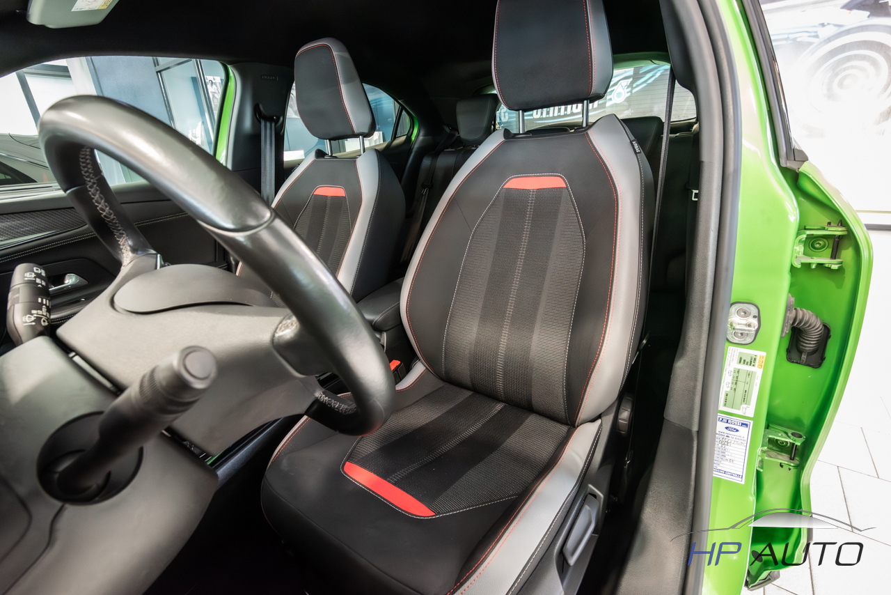 - Accattivante abbinamento colore carrozzeria bicolore verde fluo metallizzato con tetto nero ed interni sportivi in pelle e stoffa neri.